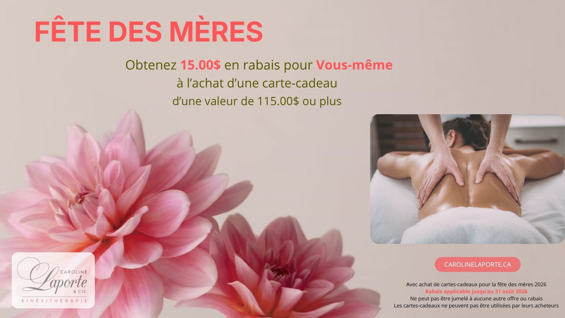 Située à Montréal et à Boucherville , la clinique Caroline Laporte & Cie met à votre service ses kinésithérapeutes et massothérapeutes agréés. Notre établissement est ouvert aux particuliers originaires de Montréal, de Laval et de la Rive-Sud.