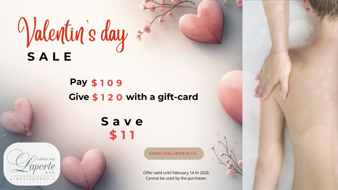 Located in Montreal and in Boucherville, Caroline Laporte & Co. is a Kinesitherapy and Massotherapy clinic where you will find highly trained and qualified therapists. We attend individuals from Montreal, Laval and Rive-Sud .